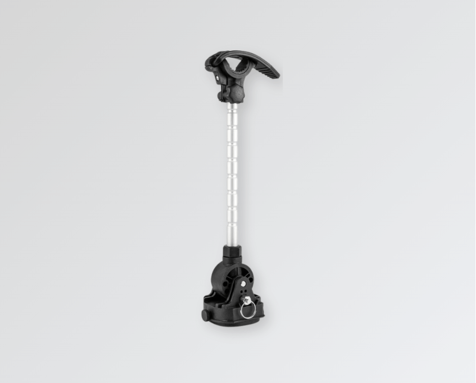 Suporte Estabilizador para Motor Minn Kota MKA-60 – Projetado para reduzir o salto do motor na posição retraída e absorver vibrações, este estabilizador oferece proteção superior ao eixo do motor.