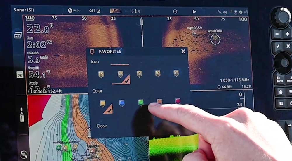 Marcar waypoints (pontos de referência) é uma atividade importante em todos os plotters cartográficos por razões óbvias, mas existem algumas maneiras diferentes de marcar um waypoint. Uma maneira é simplesmente pressionar a tecla “mark” em seu SOLIX ou APEX para rapidamente soltar um pin de waypoint diretamente abaixo do seu barco.